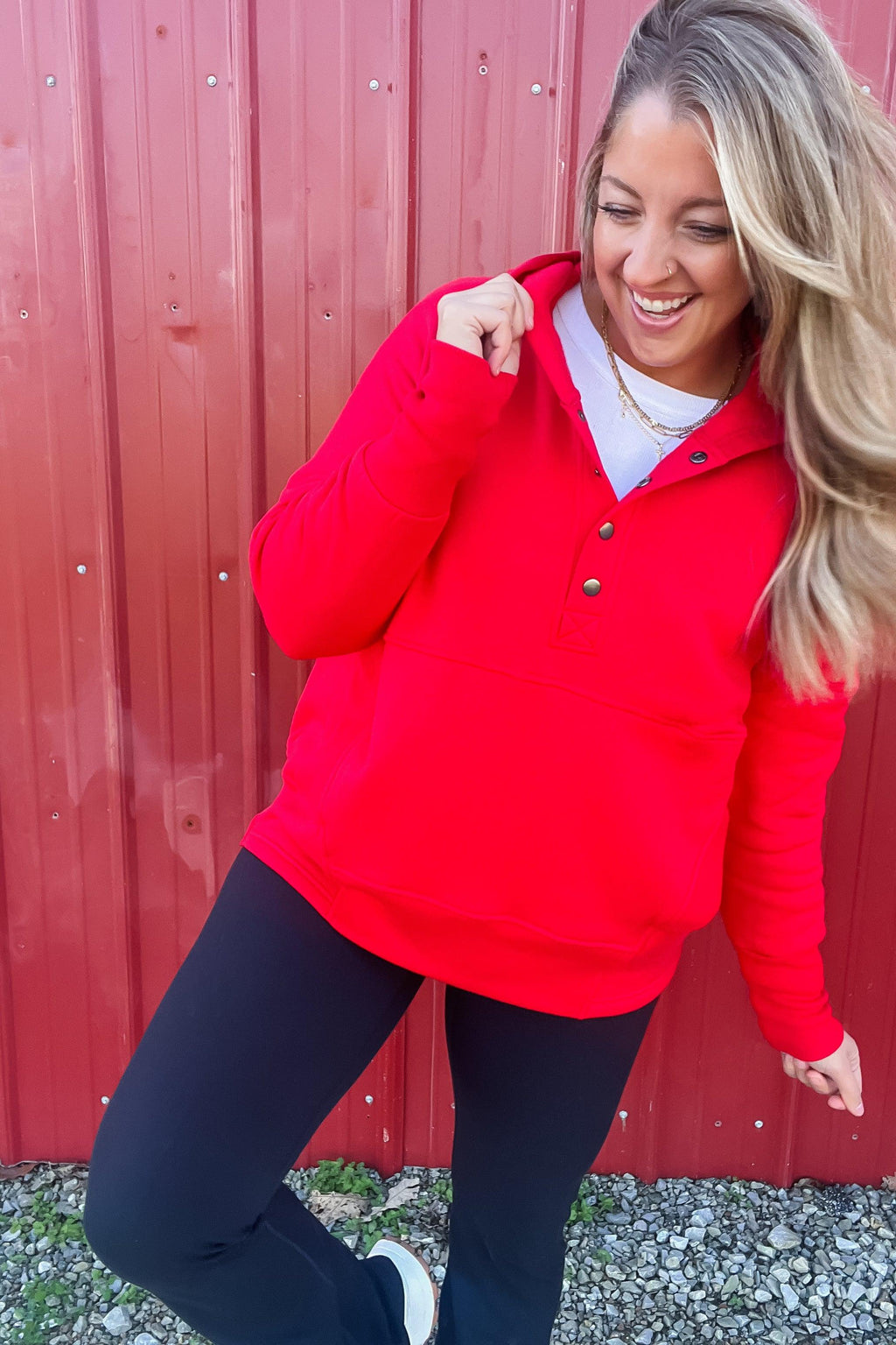 DOORBUSTER - Merry & Bright Button-Up Pullover - Ruby