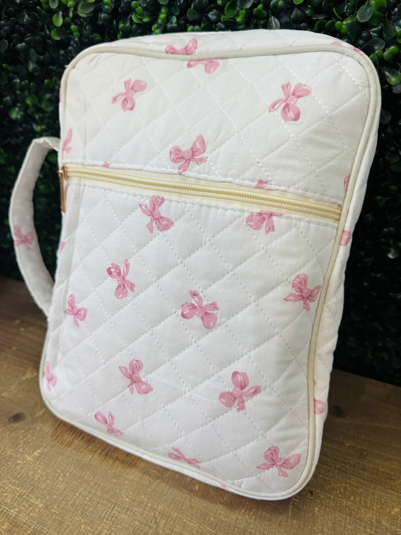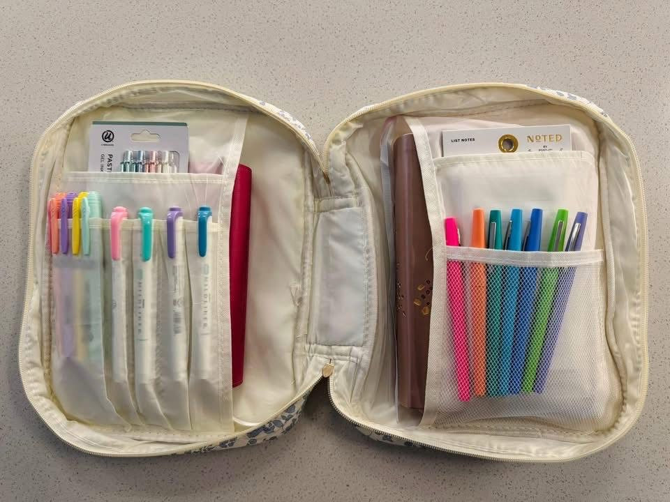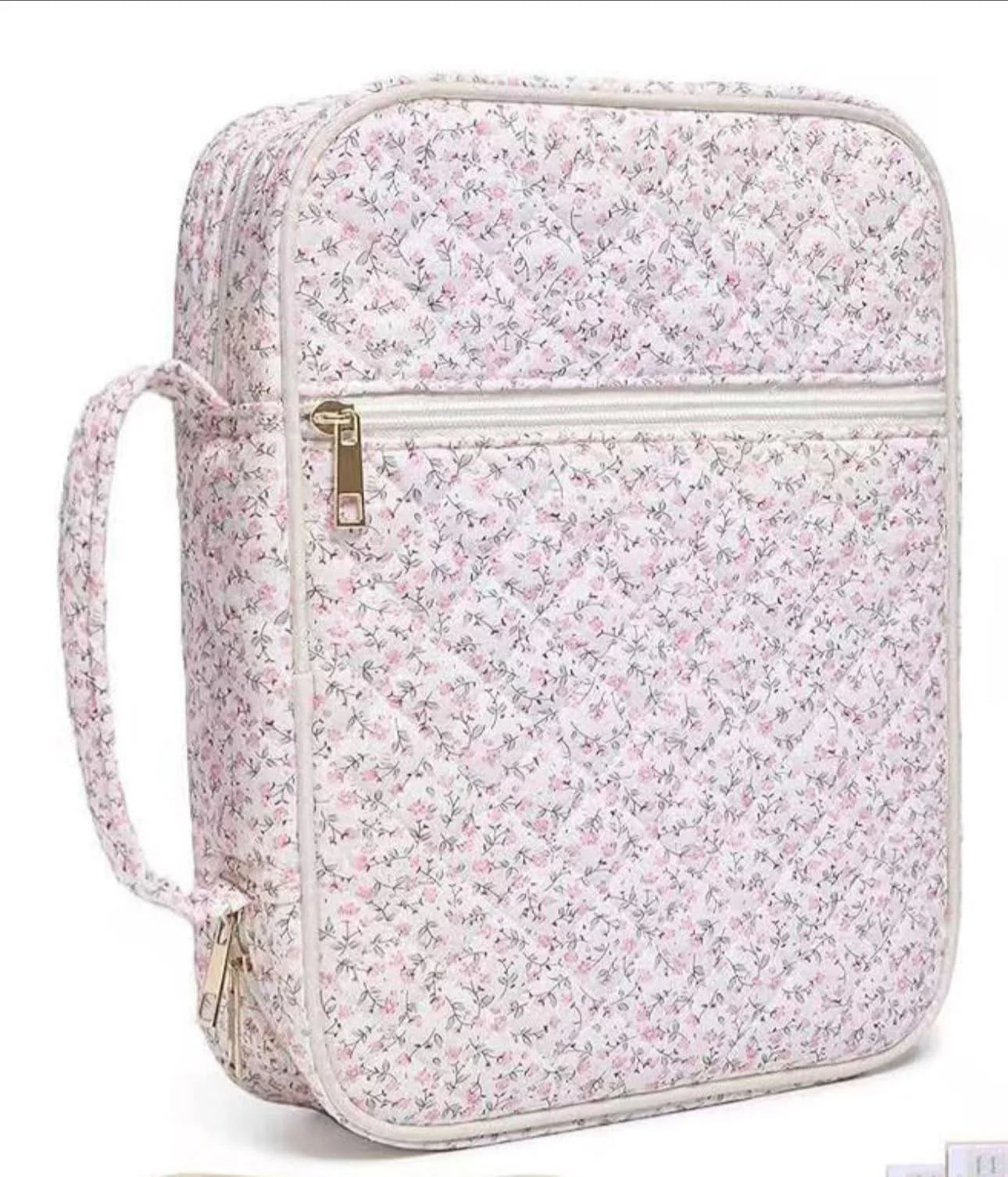 Keep your faith essentials organized and beautiful with our quilted Bible cover. Designed with a soft, fantic exterior and gold zipper detail, this cover opens to reveal multiple storage compartments perfect for your Bible, notebook, pens, and writing accessories. Each pocket is thoughtfully placed to keep everything neat and easy to reach—ideal for church, Bible study, or quiet time at home.