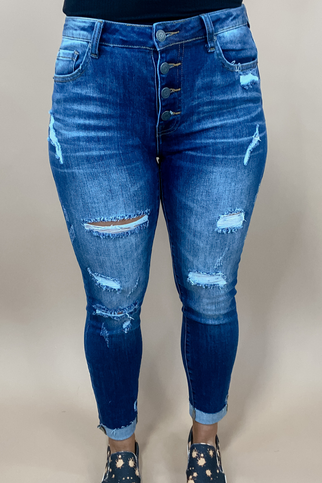 The Michelle's- Button Up Bermuda Distressed Shorts