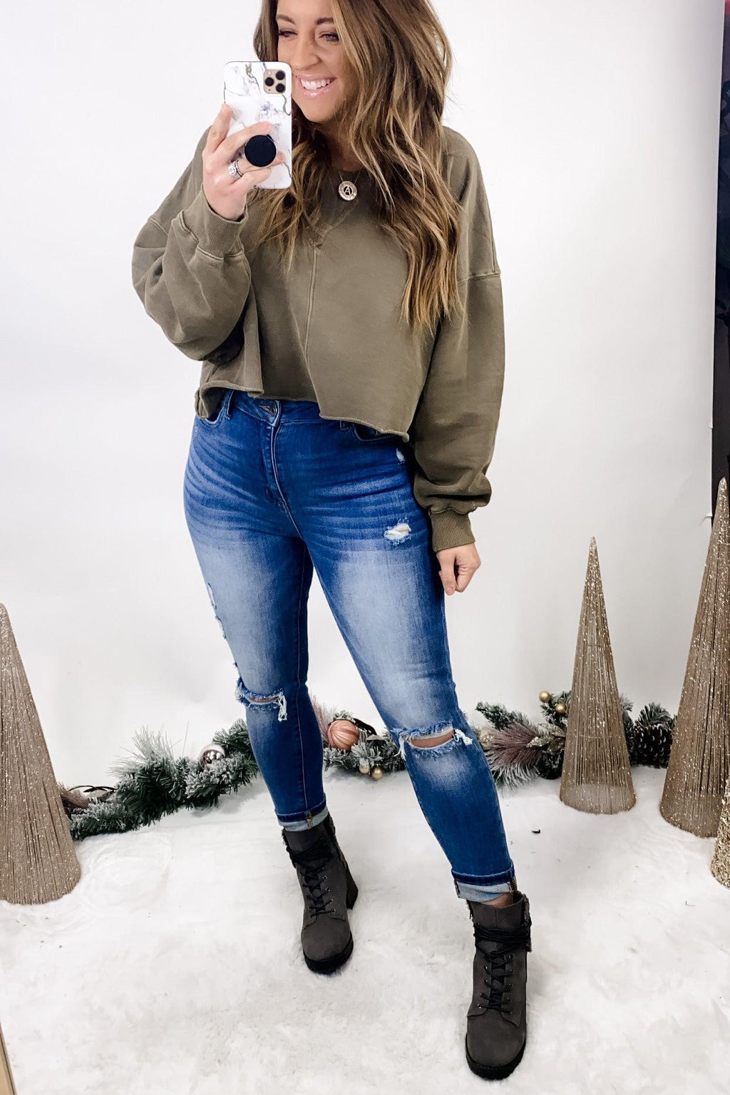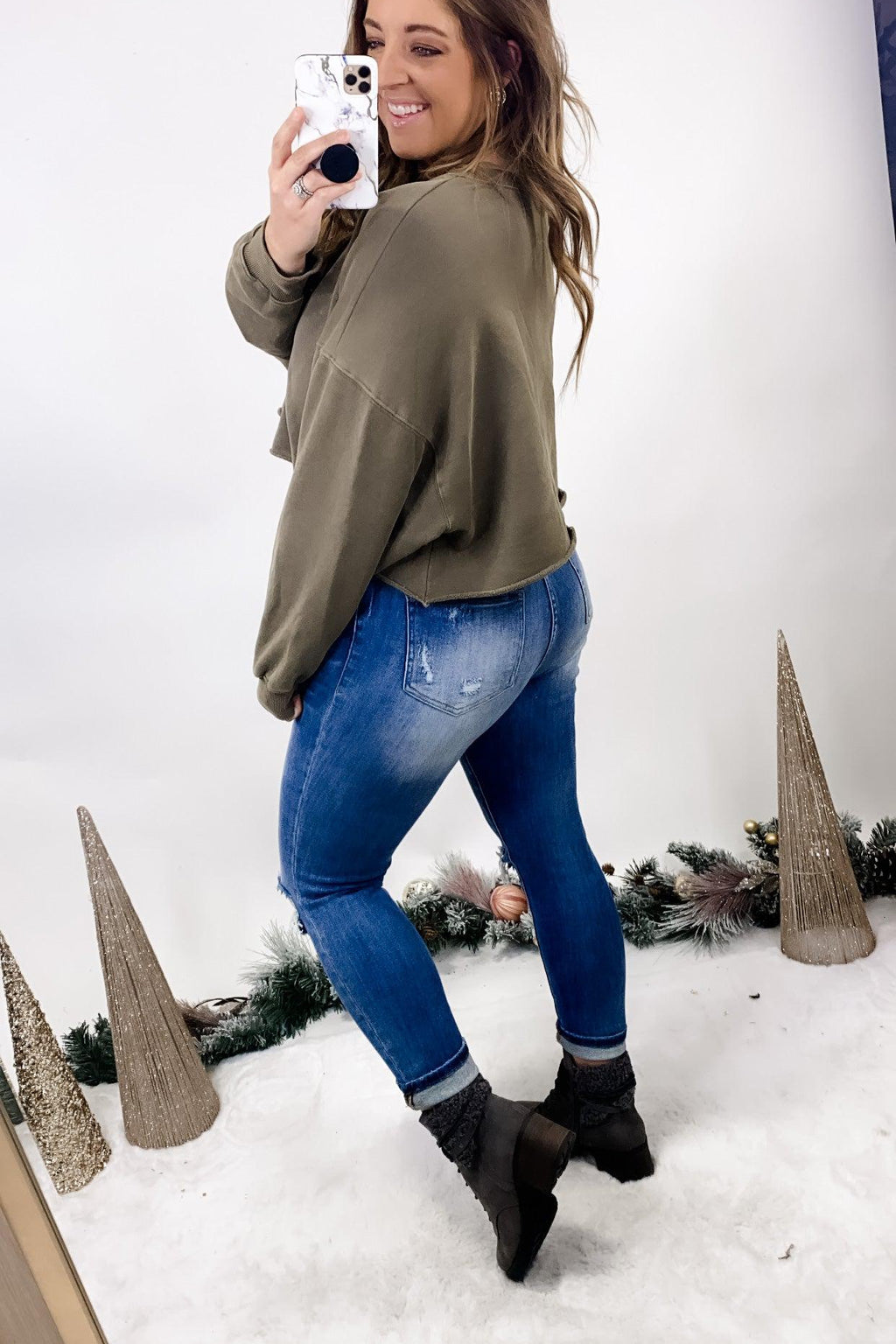 Feel The Frost- {Black, Blue, Charcoal, Ivory, Mauve & Sage} Long Sleeve Waffle Knit w/ Button Neck