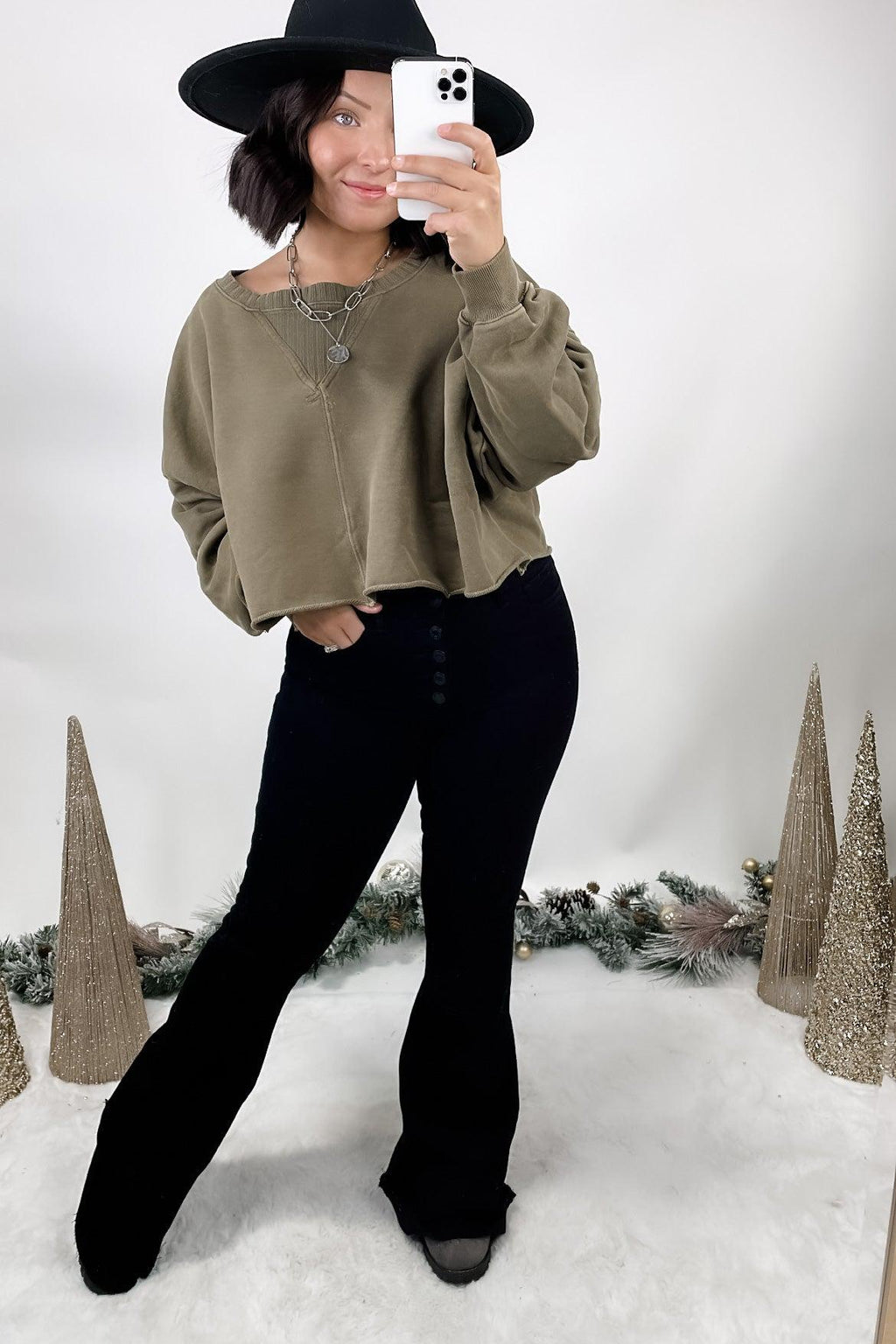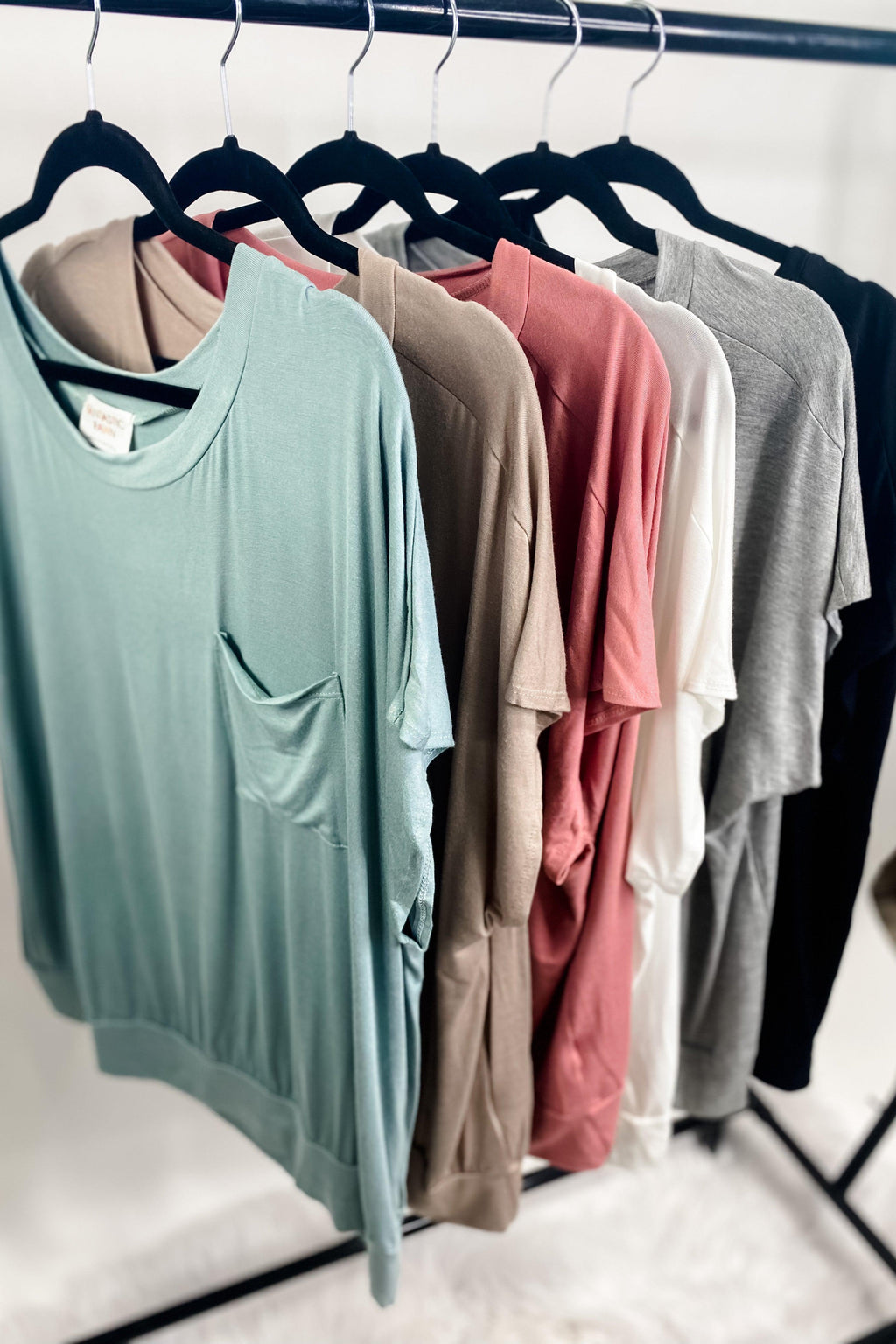 Ain't No Lie- {Black, Sage & Taupe} Ribbed Knit 3/4 Sleeve Top w/ Front Pocket