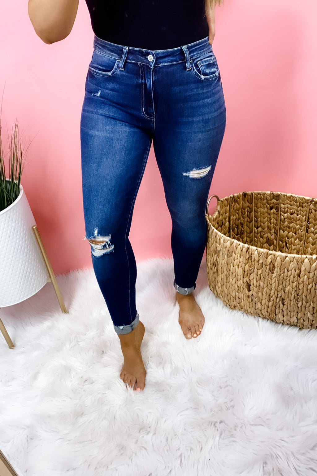 The Jalie's- DARK Distressed Boyfriend Cargo Cropped Jeans