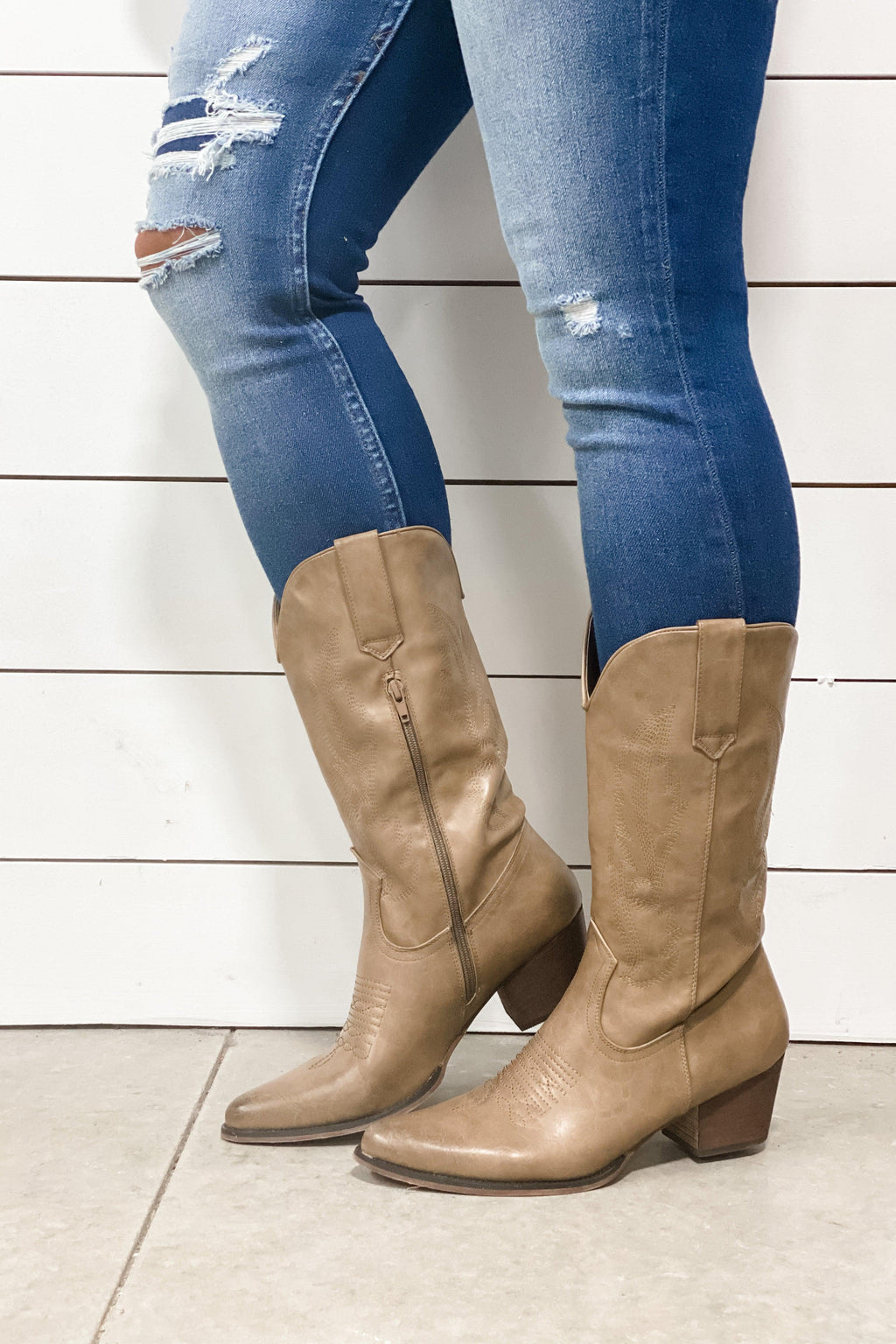 Saddle Up- {Cream, Gray & Brown} Short Western Booties