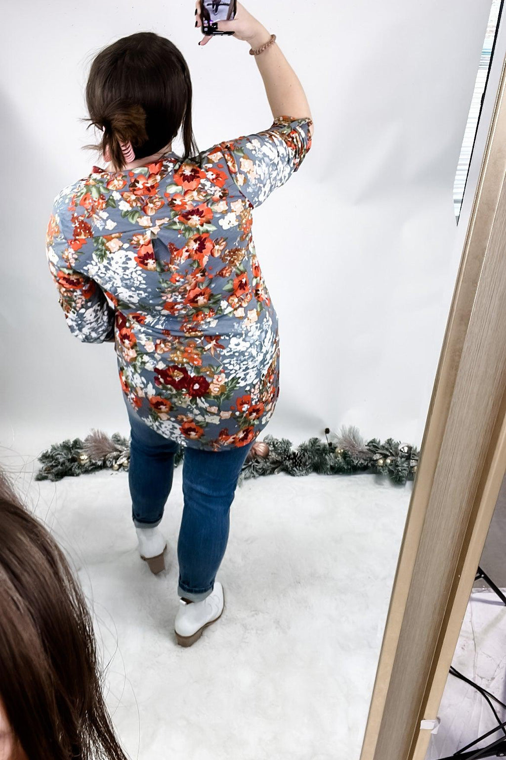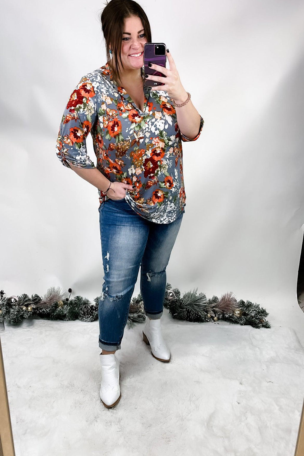 To Be Determined Drop Shoulder Top in Rust, Olive and Blue