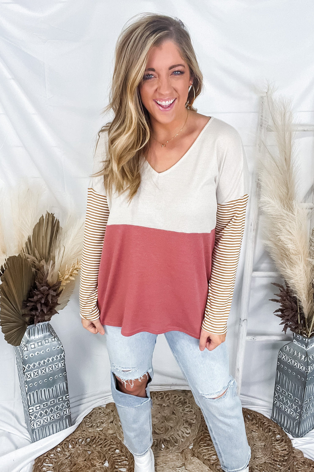 Sweet as Pie Color Block Relaxed Long Sleeve