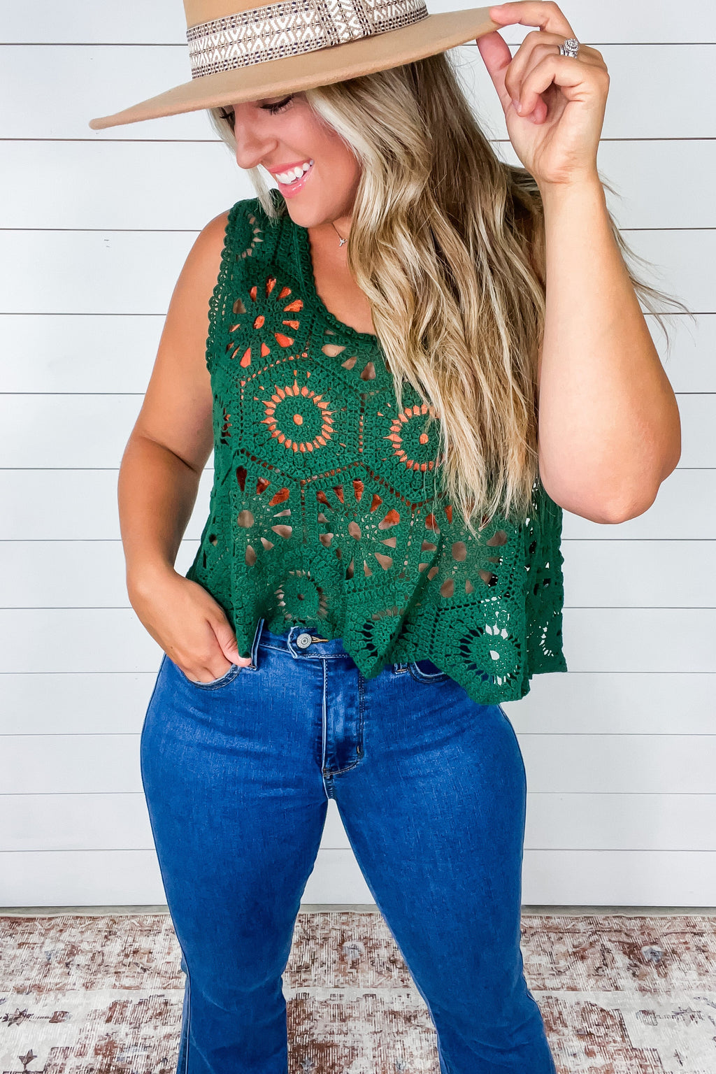 To Be Determined Drop Shoulder Top in Rust, Olive and Blue