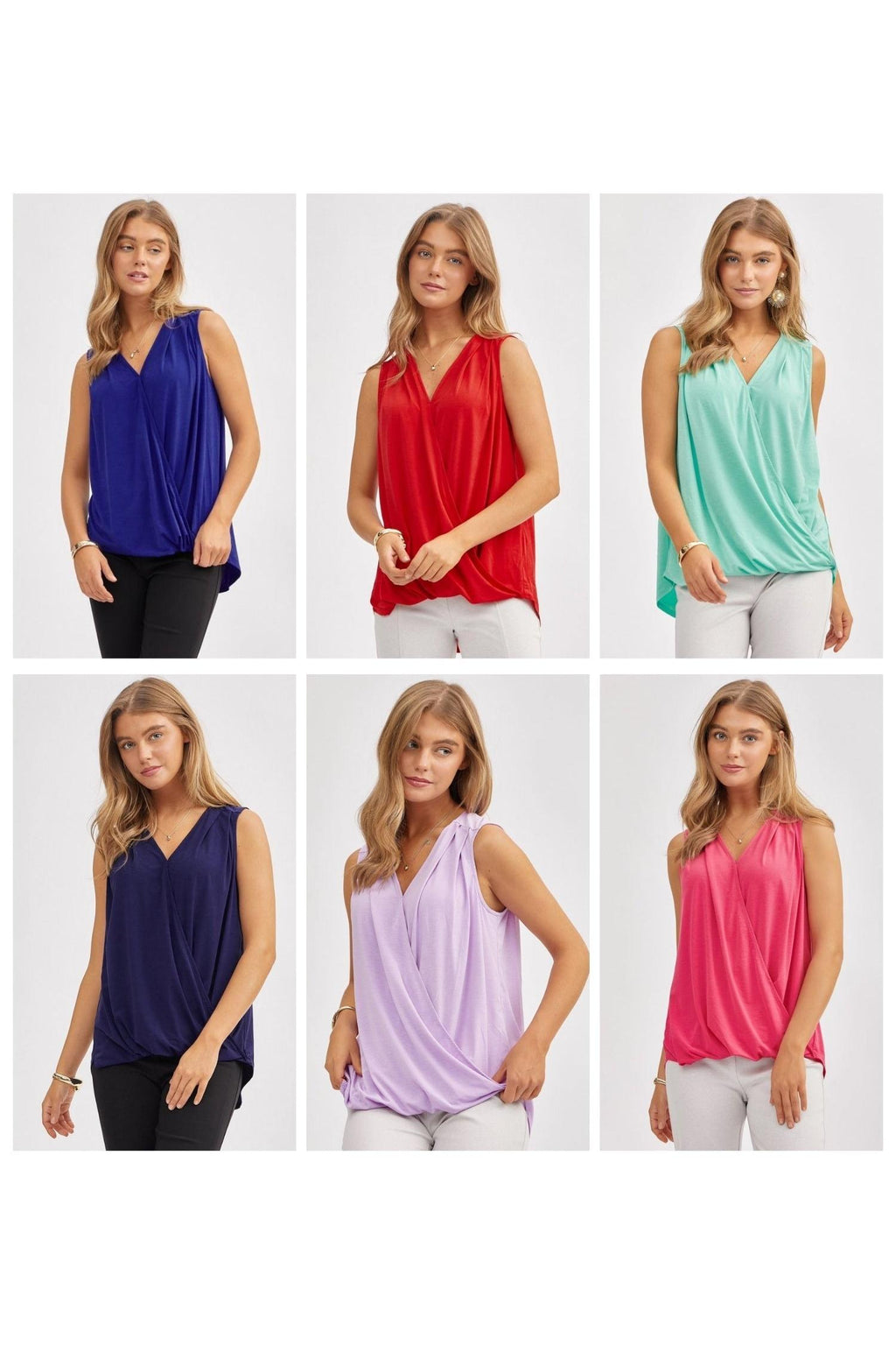 To Be Determined Drop Shoulder Top in Rust, Olive and Blue