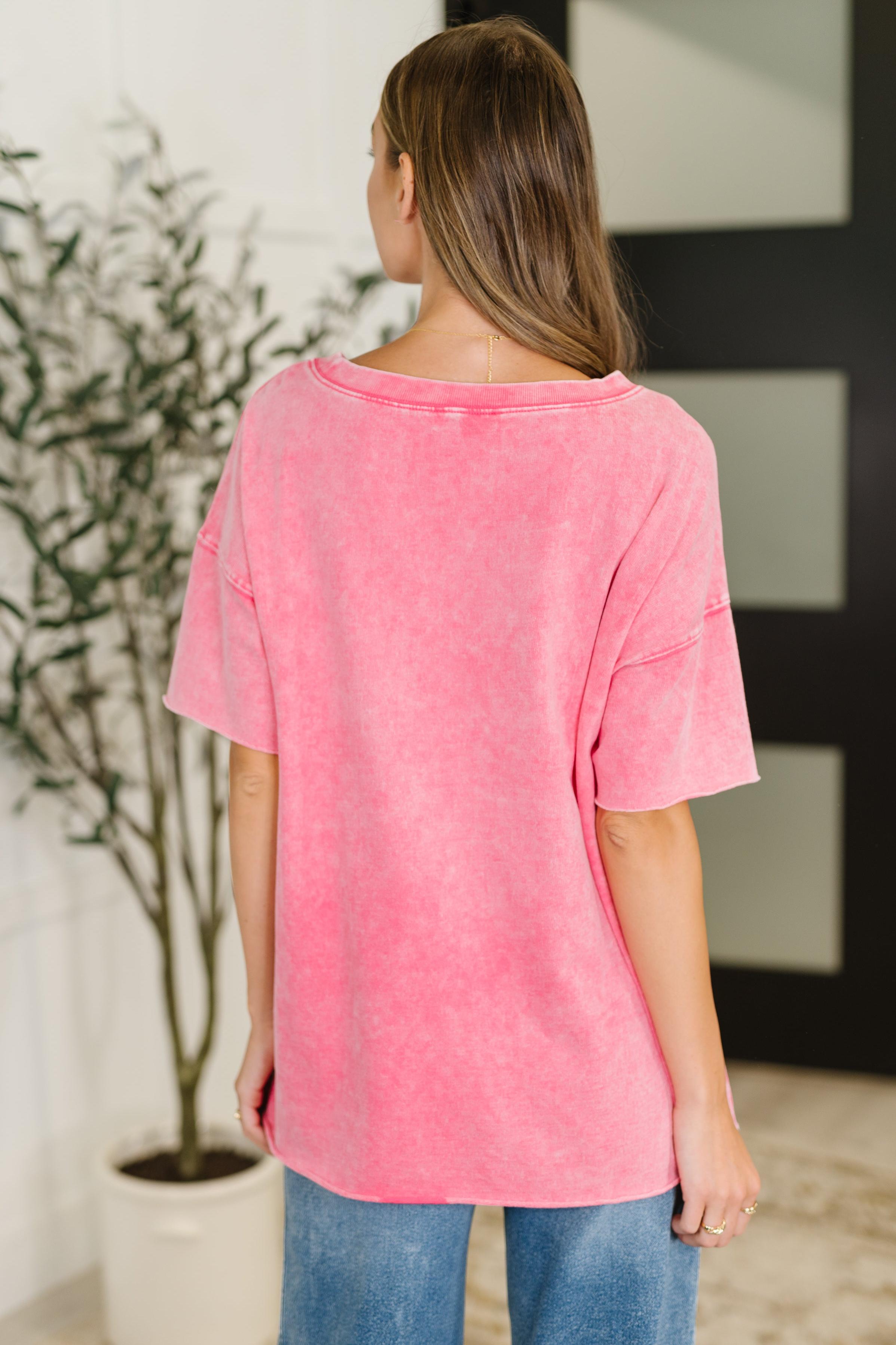 Just My Type Mineral Wash Relaxed Top in Fuchsia